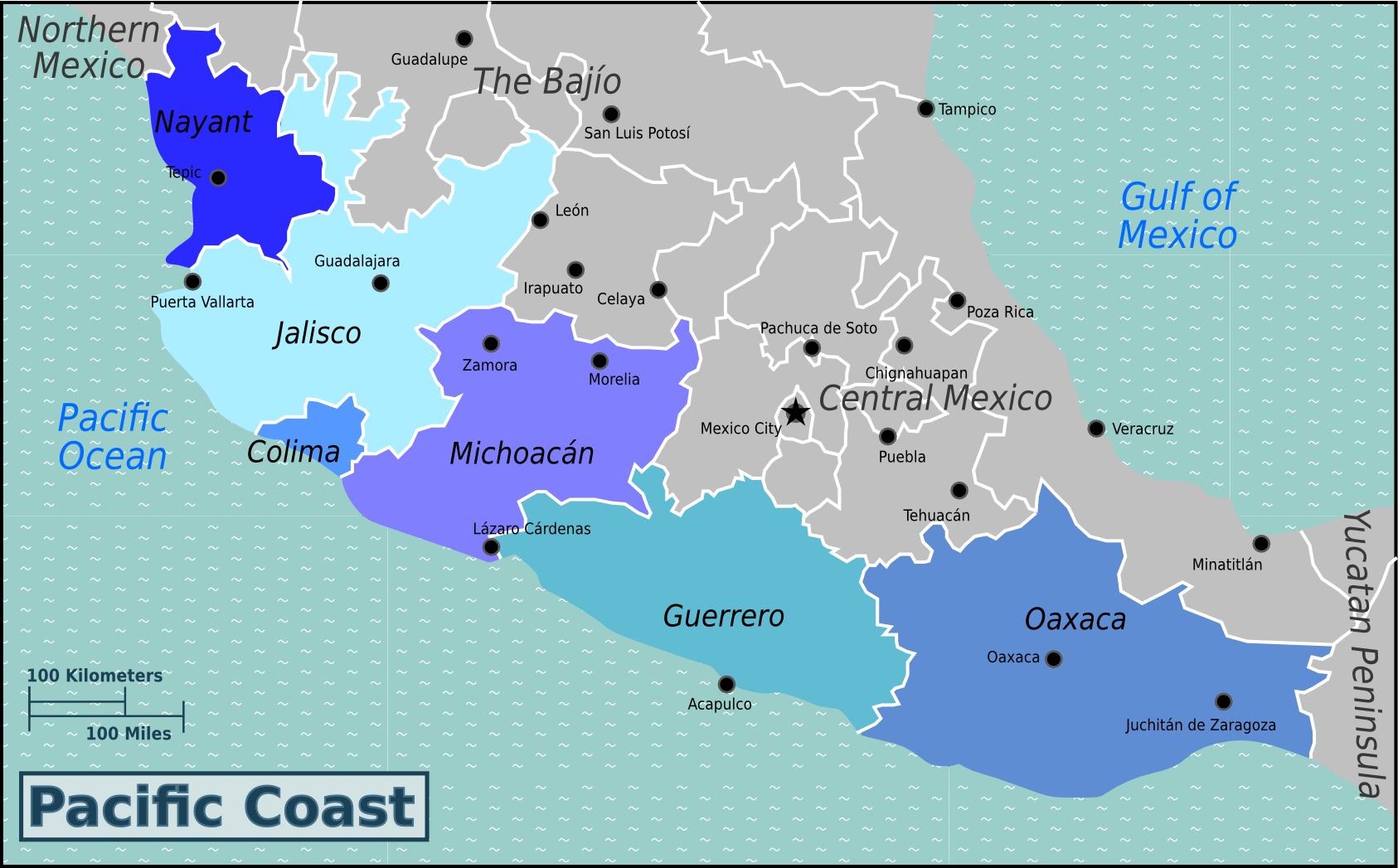 Karte klusā okeāna piekrastē no Meksikas. Meksikas klusā okeāna piekrastē karte (Central America - Amerika), lai drukātu. Meksikas klusā okeāna piekrastē karte (Central America - Amerika), lai lejupielādētu.